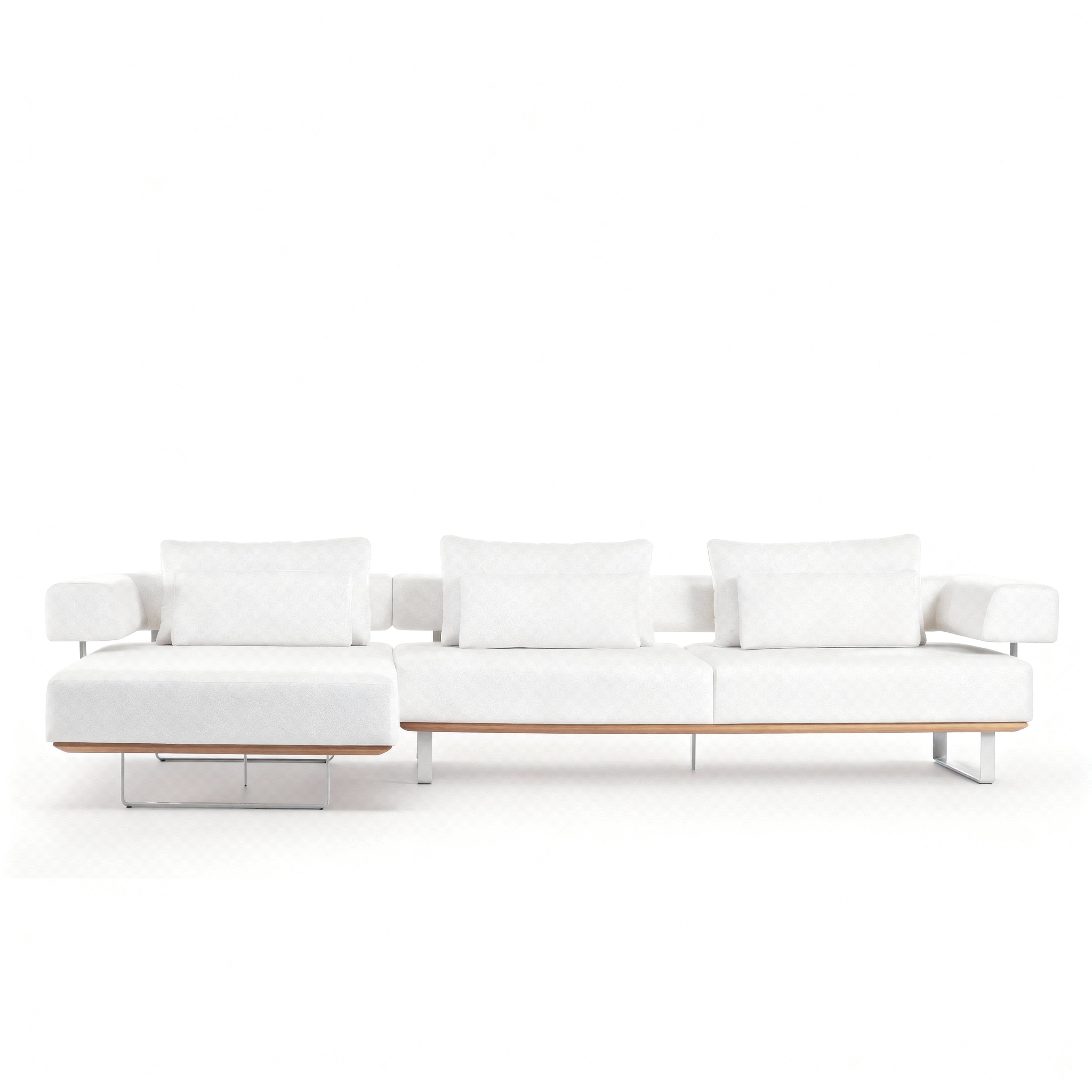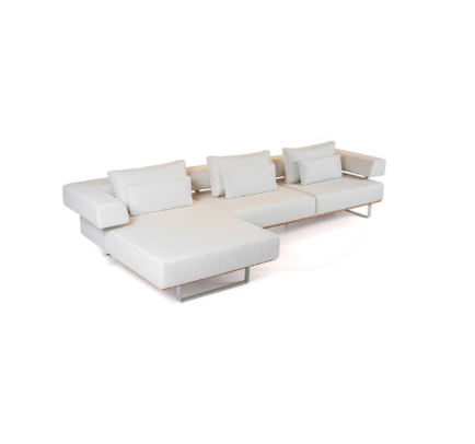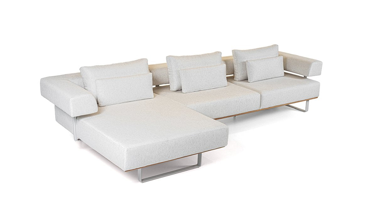 Madeira de eucalipto tratada | assento percintas elásticas, espuma D-28 soft com camada D-18 soft e manta acrílica | encosto almofada solta em manta siliconada | pés em alumínio