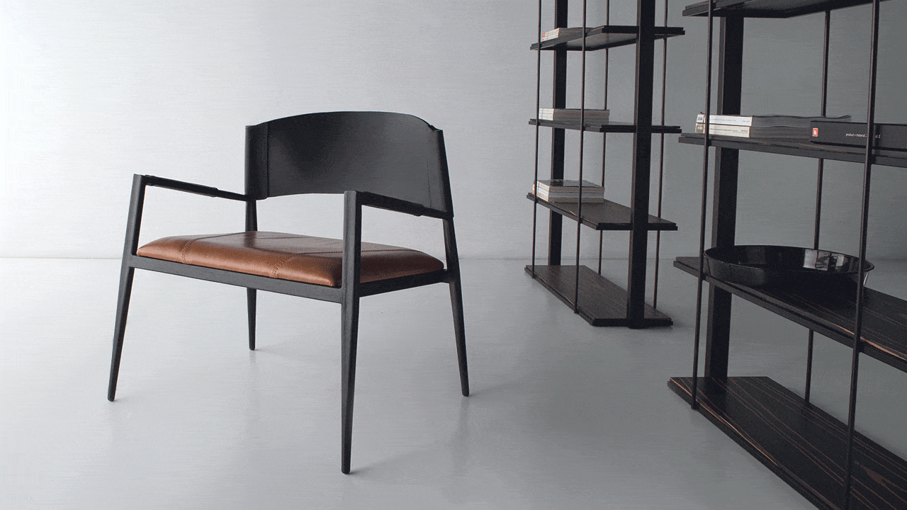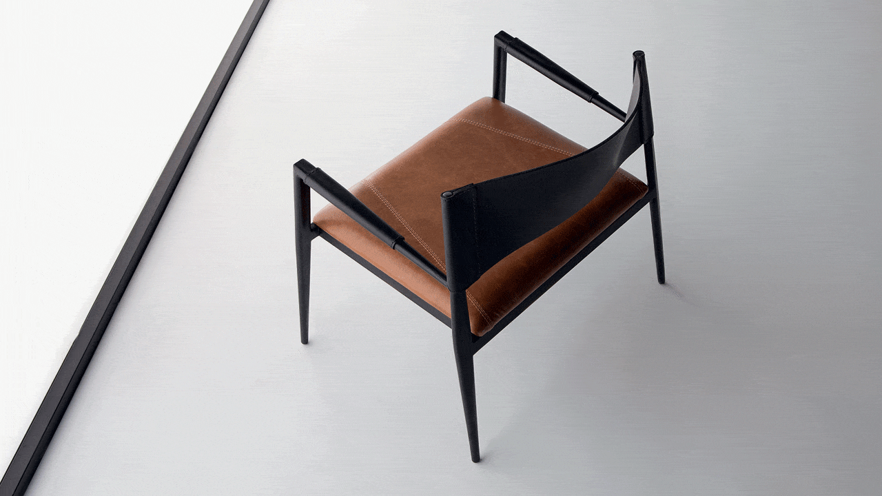 Poltrona em metal e soleta natural com assento estofado.