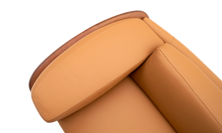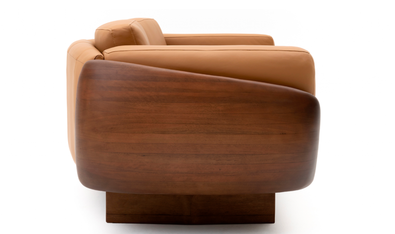 O detalhe em madeira do braço impressiona e traz o contorno para a peça de linhas retas. O design elevado do chão traz o equilíbrio entre a leveza e a robustez das formas do Callista.