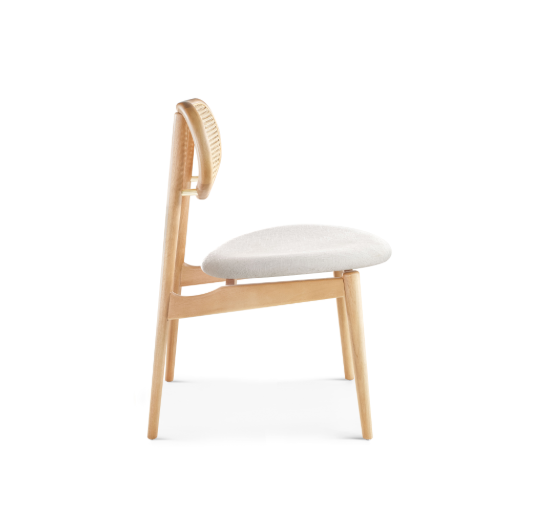 A cadeira Delta, com design sofisticado e leve, assinado por Ibanez Razzera. A sua estrutura é de madeira tauari, sendo os pés torneados e as demais peças todas boleadas, deixando a peça com mais conforto. O encosto tem a tela ratan, podendo ser nas opções sextavada ou nogueira. Entre o encosto e os pés traseiros, tem um detalhe de metal, evidenciando ainda mais o seu charme. A inclinação entre o assento e o encosto deixa a cadeira com uma ergonomicamente confortável, e o formato curvo do assento auxilia ainda mais esse conforto