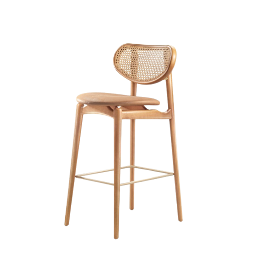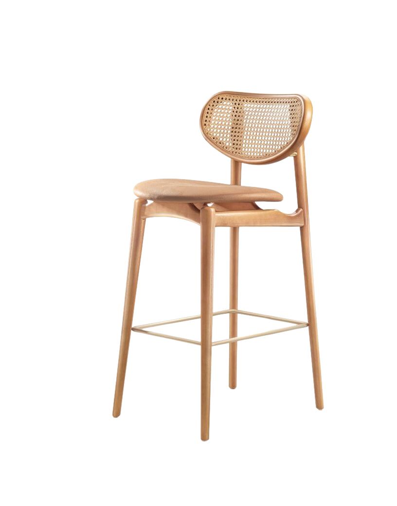 Sucesso de vendas, a cadeira Delta ganhou sua versão no formato banqueta. Com linhas curvas e elegantes em madeira tauari, o ar despojado fica por conta da tela rattan, podendo ser sextavada ou nogueira.