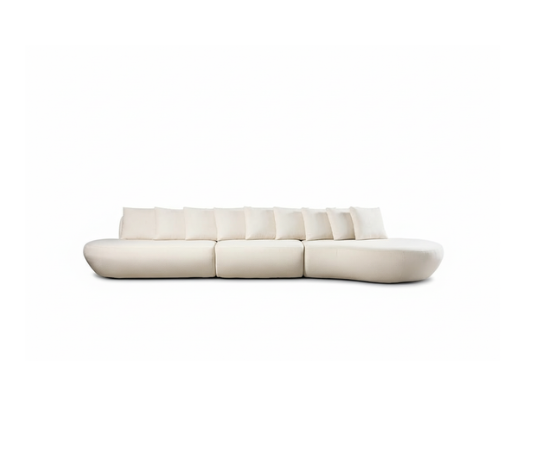 Sua forma sinuosa evoca paisagens naturais, enquanto o design modular permite múltiplas