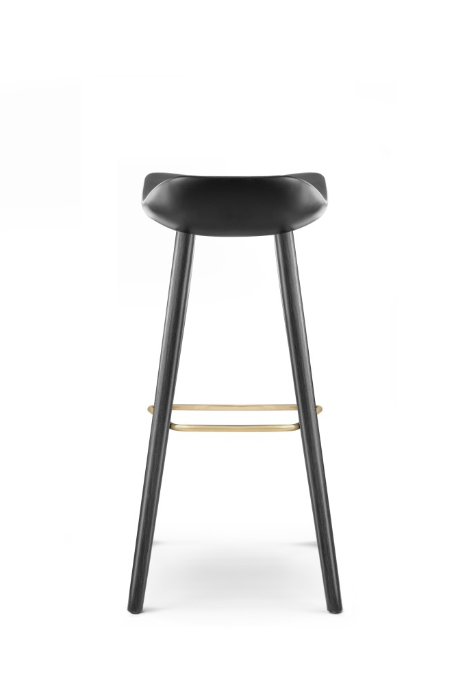 A banqueta Etos chama a atenção pelo assento esculpido em madeira maciça e pés em aço carbono. Opção ideal para ser usada junto a bistrôs ou em bancadas de espaços gourmets, cozinhas e bares.