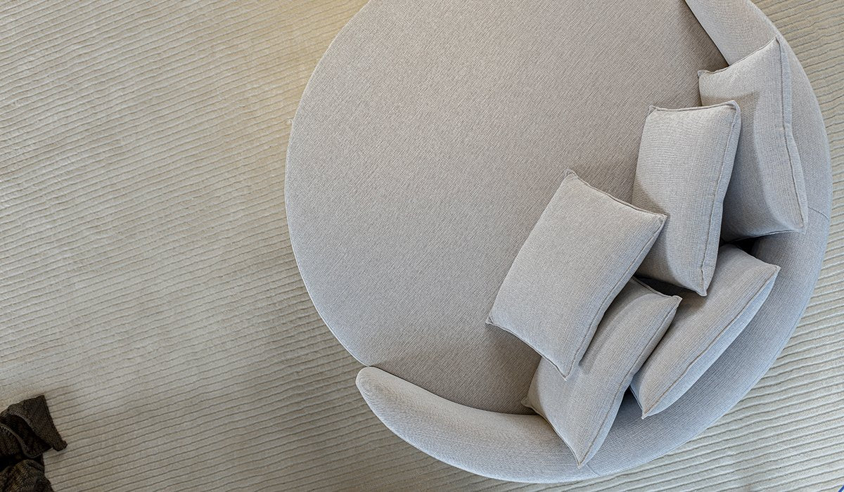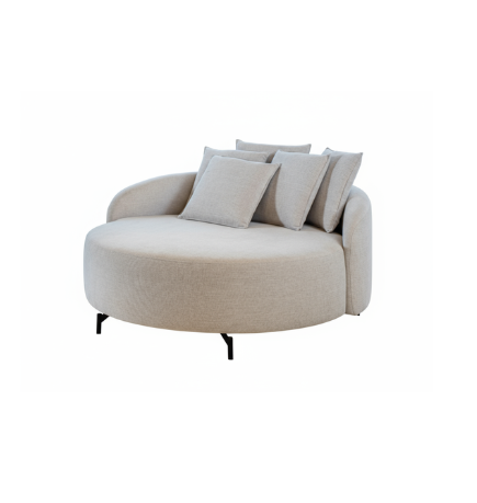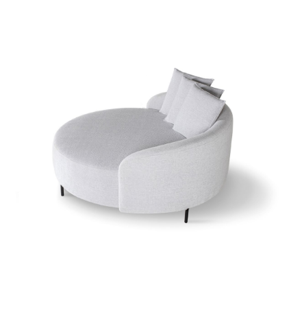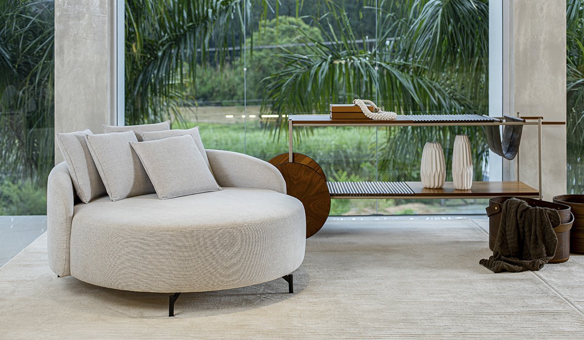 encosto madeira de eucalipto tratada e espuma D-28 soft almofadas soltas em fibra siliconada | pés em alumínio | revestimento conforme mostruário de tecidos.