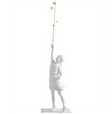 Com leveza e precisão, a escultura propõe uma pausa: um instante entre o chão e o voo, entre o gesto e o sonho.A haste dourada, como pensamento suspenso, conduz o olhar e eleva o espaço ao sutil.