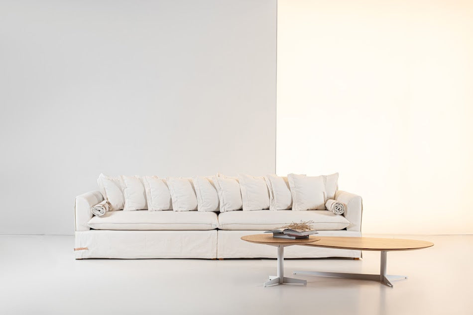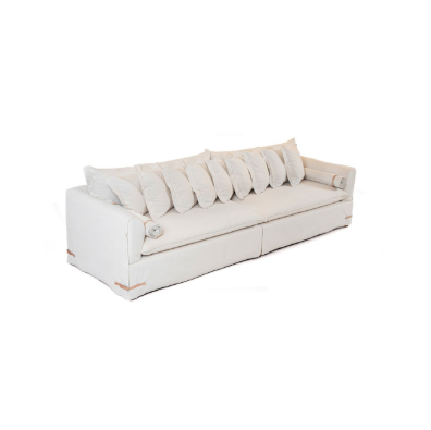 Madeira de eucalipto tratada | assento espuma D-28 soft com camada D-18 soft, percintas elásticas e molas bonnel | encosto almofadas soltas em fibra siliconada | pés em madeira.