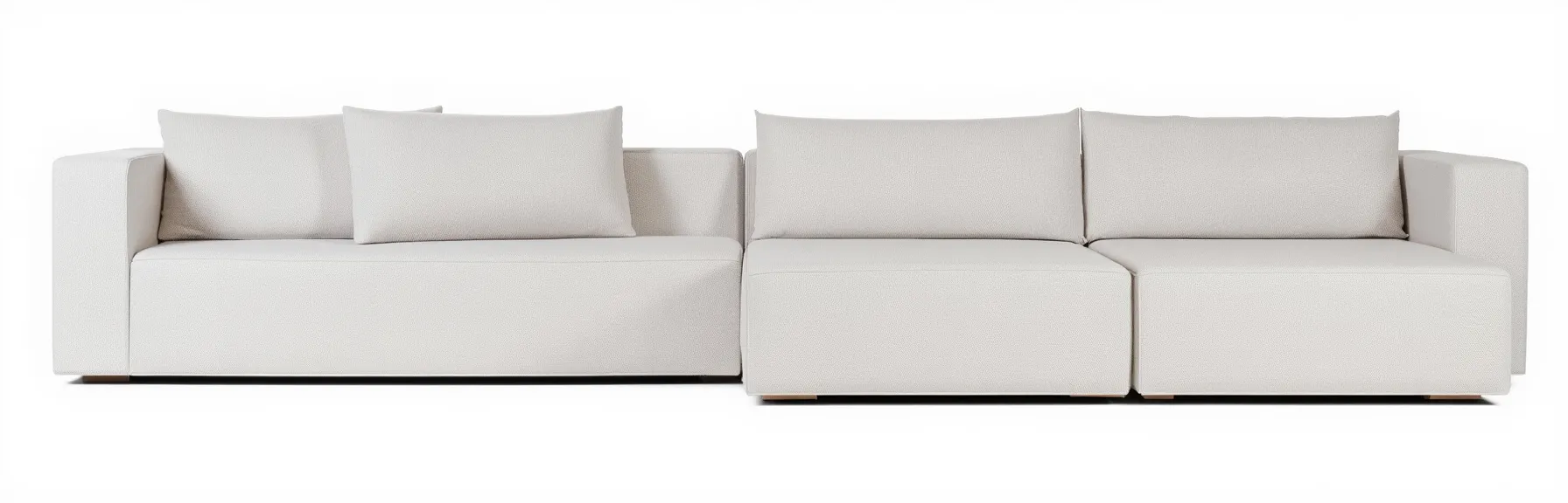 Madeira de eucalipto tratada | assento espuma D-28 com camada D-18 soft, molas bonnel e camada de manta texturizada | encosto almofadas soltas em fibra siliconada | pés em madeira.