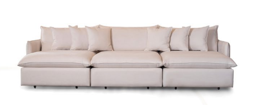 Madeira de eucalipto tratada | assento retrátil, espuma D-28 com camada D-18 soft, percintas elásticas e molas bonnel | encosto almofadas soltas em fibra siliconada | pés em madeira.