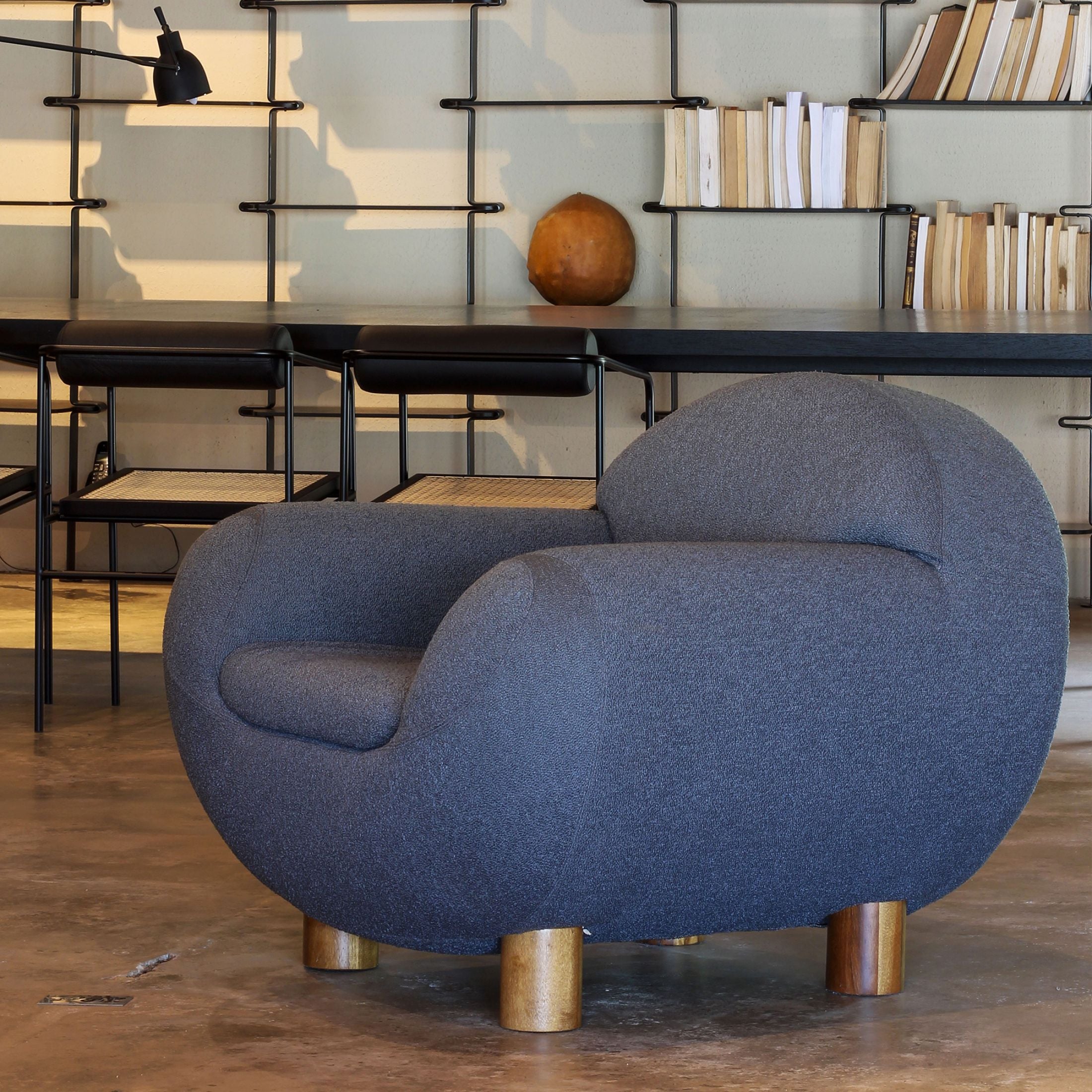 Produto disponível para revestimento em tecido ou couro. Produção somente com couro maleável. Pés somente em madeira Canela Natural.