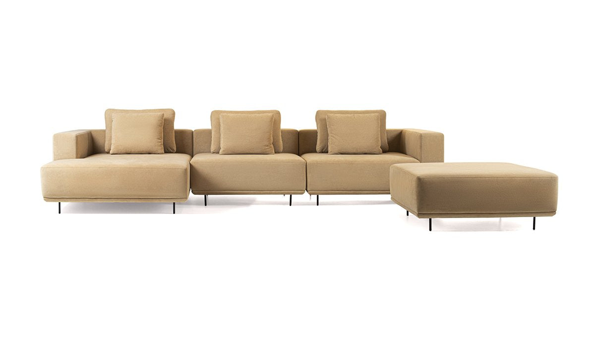 Madeira de eucalipto tratada | assento espuma D-28 soft com camada D-18 soft, molas bonnel e camada de manta texturizada | encosto almofadas soltas em fibra siliconada | pés em alumínio pintado.