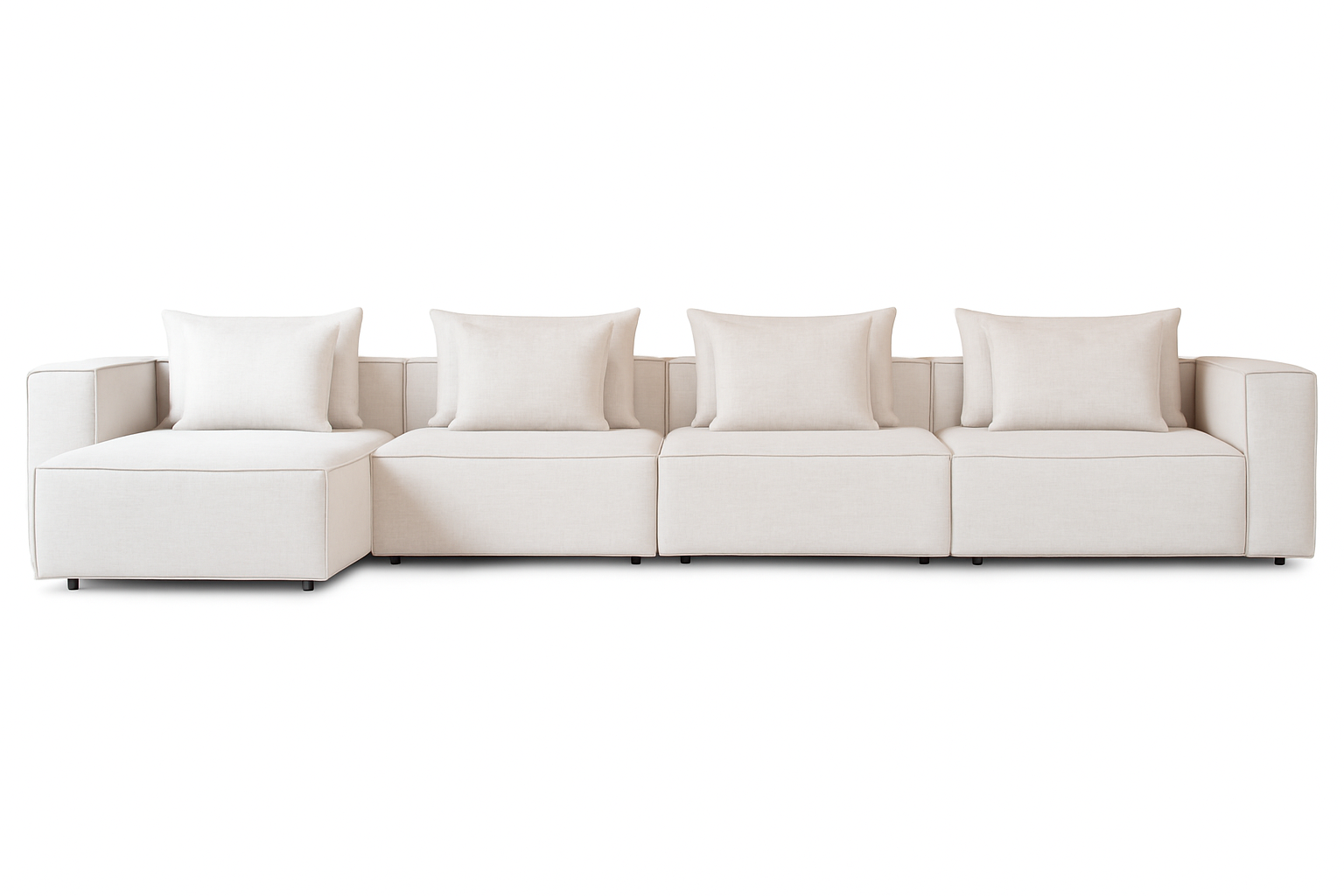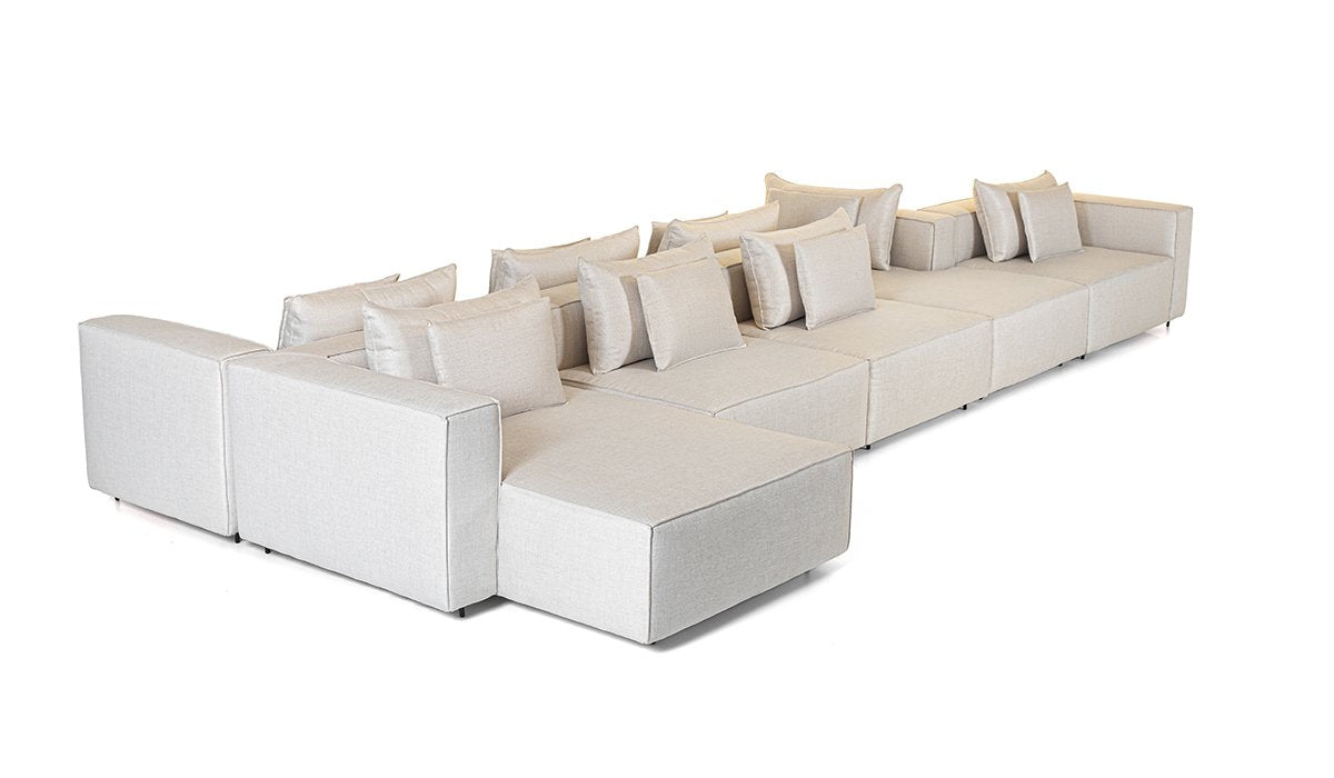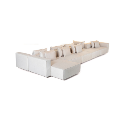 Madeira de eucalipto tratada | assento espuma D-28 soft com camada D-18 soft, molas bonnel e camada de manta texturizada | encosto almofadas soltas em fibra siliconada | pés em alumínio pintado.