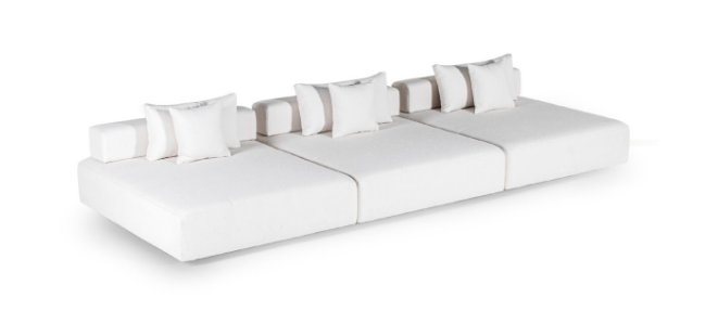 madeira de eucalipto tratada e espuma D-28 soft, almofadas soltas em fibra siliconada | pés em madeira