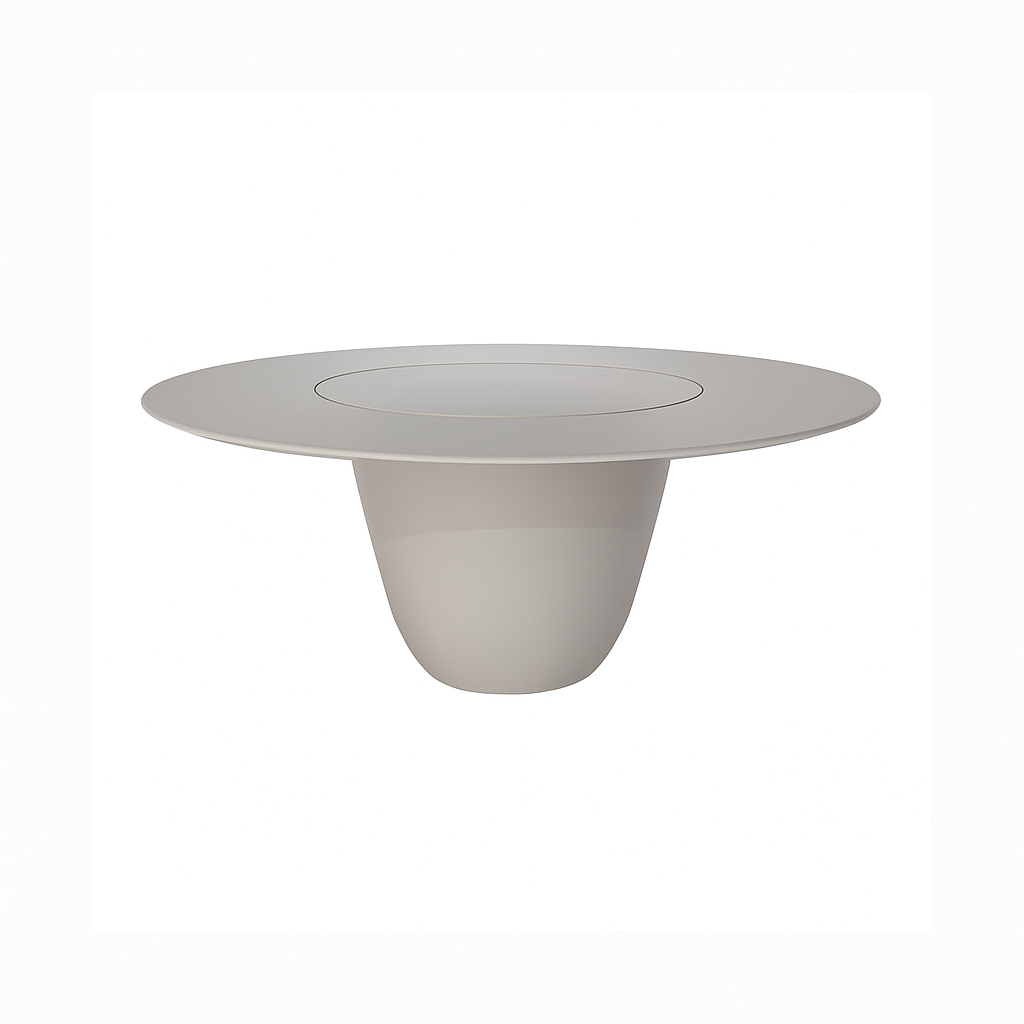 Base em fibra e tampo em madeira disponível em pintura padrão fosca ou brilho. Cores especiais Sayerlack, Máster Chromo e metálicas. Opção de tampo giratório