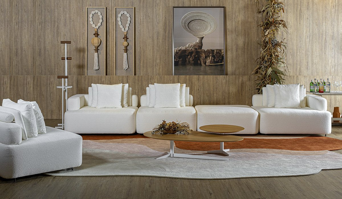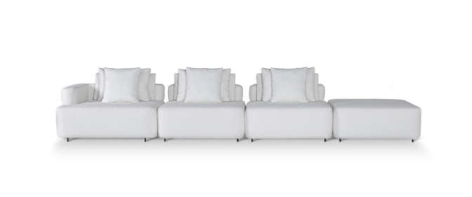 Madeira de eucalipto tratada | assento espuma D-28 soft, envolta por espessa camada de manta siliconada | encosto almofadas soltas em fibra siliconada | pés em alumíniorevestimento conforme mostruário de tecidos.